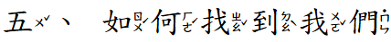 如(ㄖㄨˊ)何(ㄏㄜˊ)找(ㄓㄠˇ)到(ㄉㄠˋ)我(ㄨㄛˇ)們(ㄇㄣ˙)